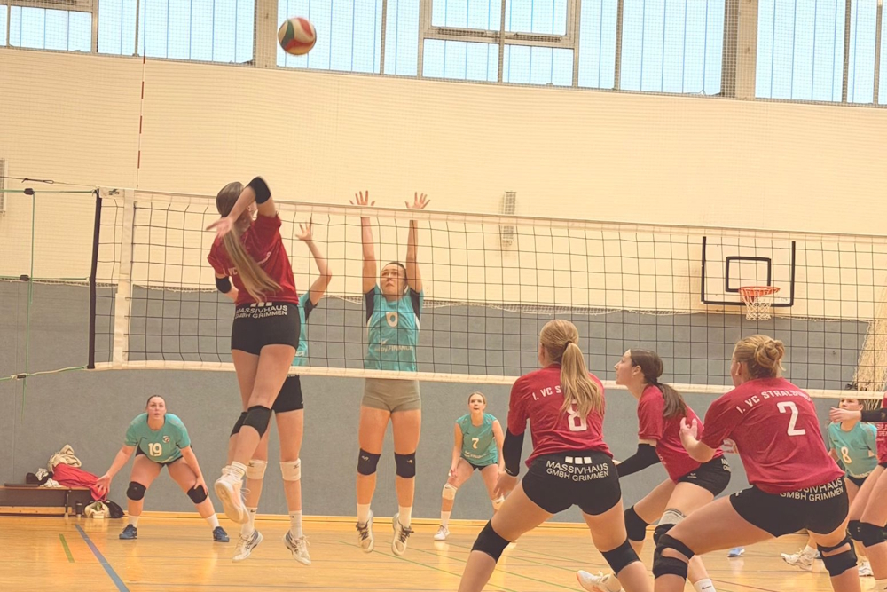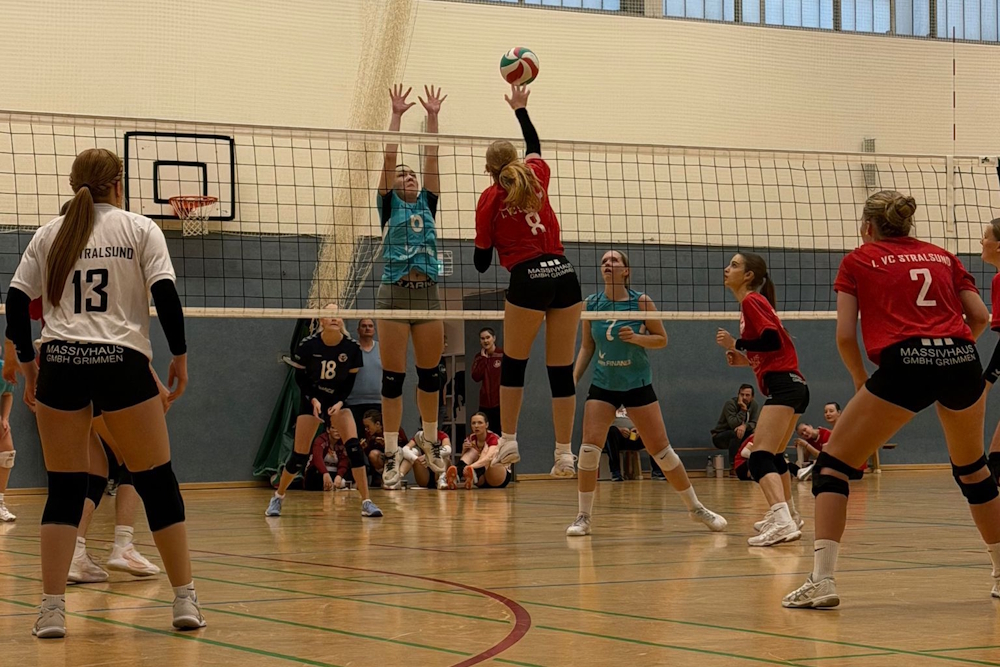 Im Halbfinale wartete mit der HSG Uni Rostock, ein recht großgewachsenes uns spielstarkes Team. Im erstens Satz dominierte man das Spiel, kaum Fehler und druckvolles Angriffsspiel brachten ein 25:11 für die Stralsunder. Im zweiten Satz ging das dann leider etwas verloren. Viele Aufschlagfehler und Ungenauigkeiten im Aufbau, sorgten für einen permanenten Rückstand. So gab man Satz zwei, leider auch stark verunsichert, mit 26:28 ab. Kurze die Krone richten und ab in den Tiebreak. Mit viel Überzeugung fegte man dann den Gegner mit 15:8 vom Feld und sorgte für den Finaleinzug.